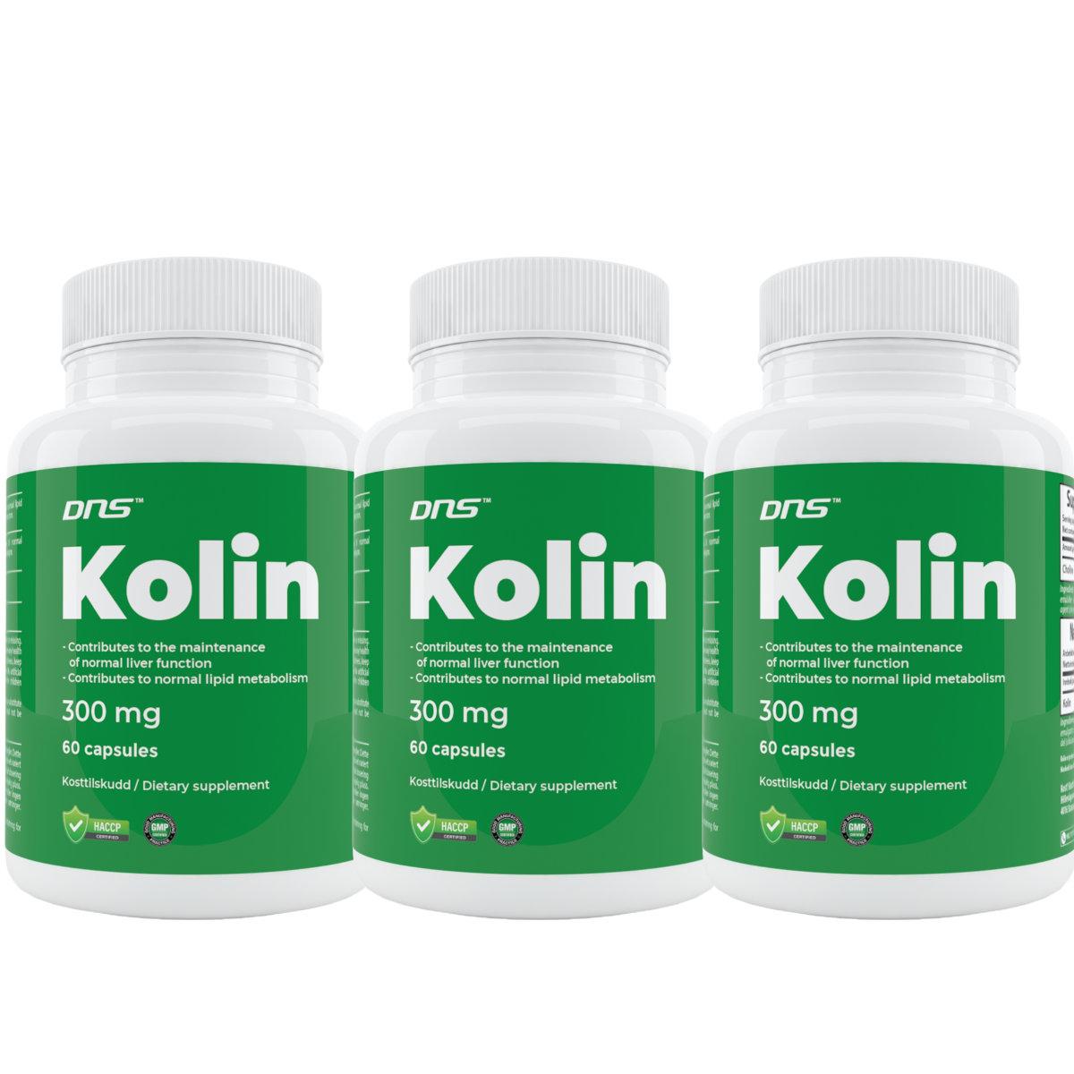 DNS Kolin inneholder kolin (choline), et essensielt næringsstoff som spiller en viktig rolle i kroppens stoffskifte og leverhelse. Kolin inngår i oppbygningen av cellemembraner og er nødvendig for normal transport og omsetning av fett i kroppen.