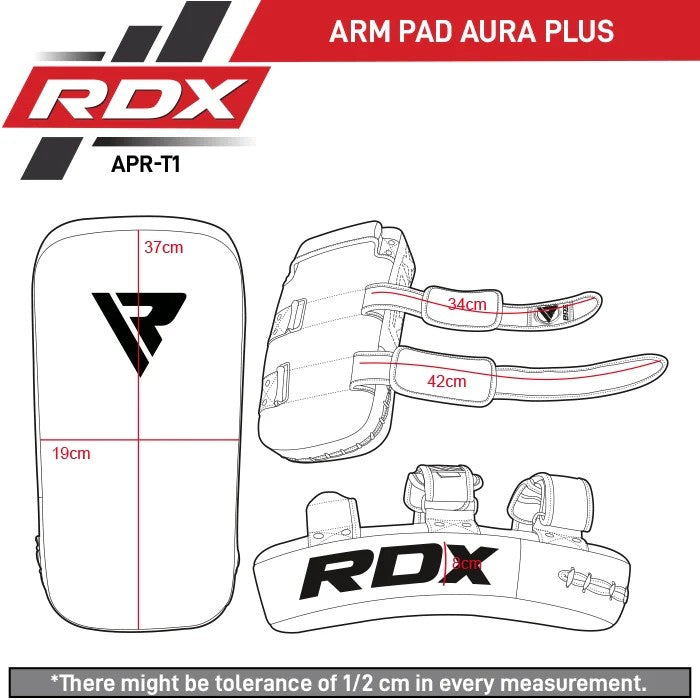 RDX T1 Thai Pad selges enkeltvis. Velg 2 stk hvis du ønsker et par. Detaljert størrelsesguide (cm) finner du i produktbildene.